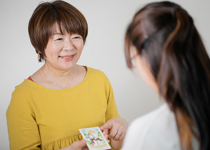 心のセルフケアコーチ家族のために生きている女性の方にカウンセリング用のひらめくカードを使って自分の人生を取り戻すサポートをします